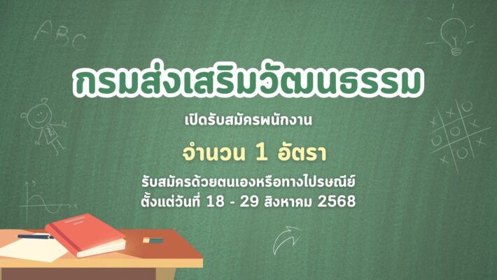กรมส่งเสริมวัฒนธรรม เปิดรับสมัครพนักงาน 1 อัตรา รับสมัค