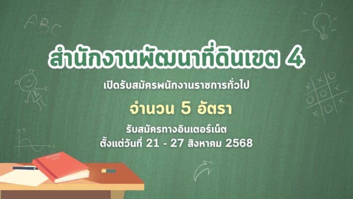 สำนักงานพัฒนาที่ดินเขต 4 เปิดรับสมัครพนักงานราชการทั่วไ