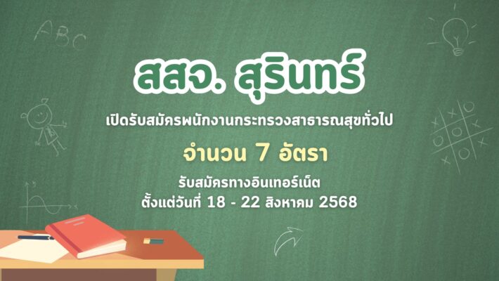 สสจ. สุรินทร์ เปิดรับสมัครพนักงานกระทรวงสาธารณสุขทั่วไป