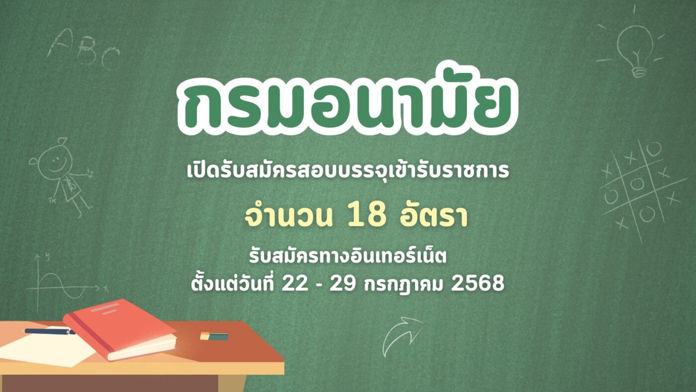 กรมอนามัย เปิดรับสมัครสอบบรรจุเข้ารับราชการ 18 อัตรา รับสมัครทางอินเทอร์เน็ต ตั้งแต่วันที่ 22 – 29 กรกฎาคม 2568