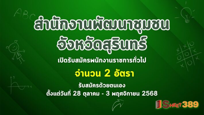 สํานักงานพัฒนาชุมชนจังหวัดสุรินทร์ เปิดรับสมัครพนักงานร