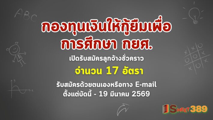 กองทุนเงินให้กู้ยืมเพื่อการศึกษา เปิดรับสมัครลูกจ้างชั่