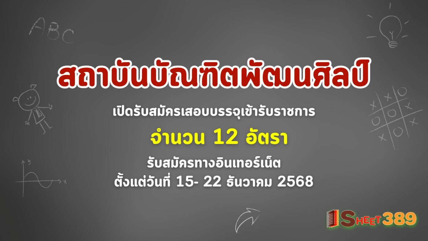 สถาบันบัณฑิตพัฒนศิลป์ เปิดรับสมัครเสอบบรรจุเข้ารับราชการ 12 อัตรา รับสมัครทางอินเทอร์เน็ต ตั้งแต่วันที่ 15- 22 ธันวาคม 2568