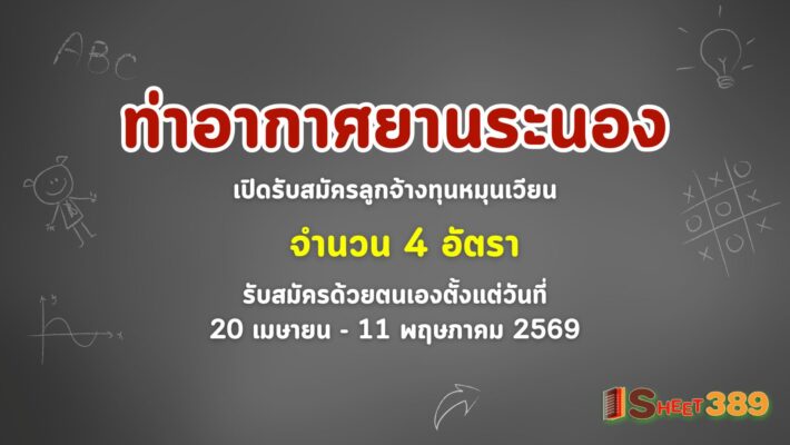 ท่าอากาศยานระนอง เปิดรับสมัครลูกจ้างทุนหมุนเวียน 4 อัตร