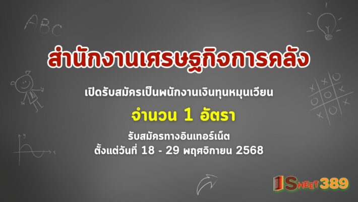 สำนักงานเศรษฐกิจการคลัง เปิดรับสมัครเป็นพนักงานเงินทุนห