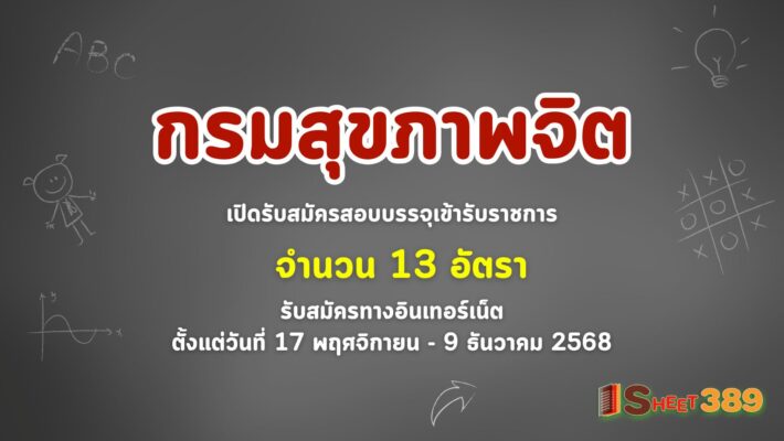 กรมสุขภาพจิต เปิดรับสมัครสอบบรรจุเข้ารับราชการ 13 อัตรา