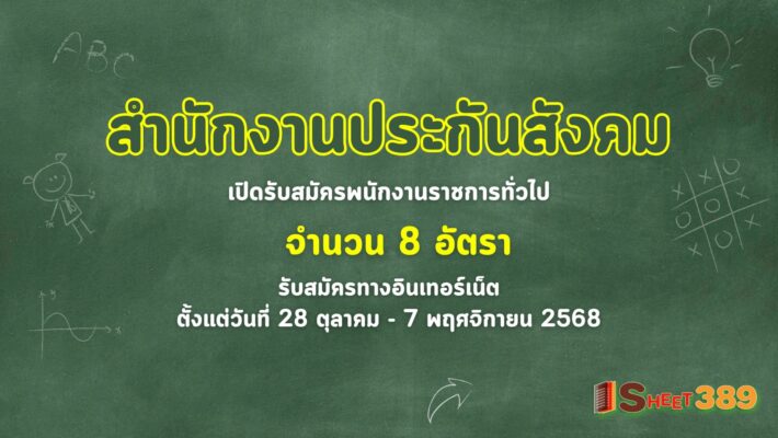 สำนักงานประกันสังคม เปิดรับสมัครพนักงานราชการทั่วไป 8 อ