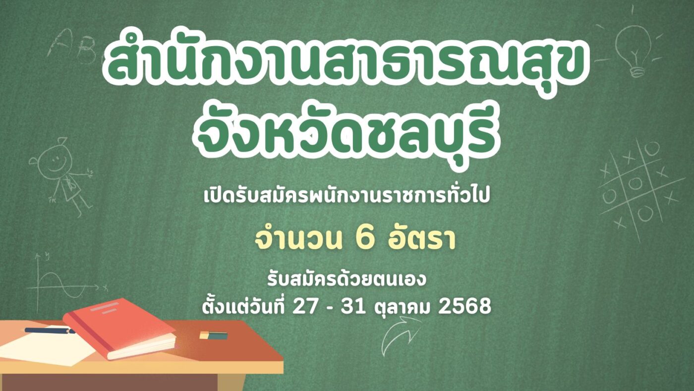 สำนักงานสาธารณสุขจังหวัดชลบุรี เปิดรับสมัครพนักงานราชการทั่วไป 6 อัตรา รับสมัครด้วยตนเอง ตั้งแต่วันที่ 27 – 31 ตุลาคม 2568