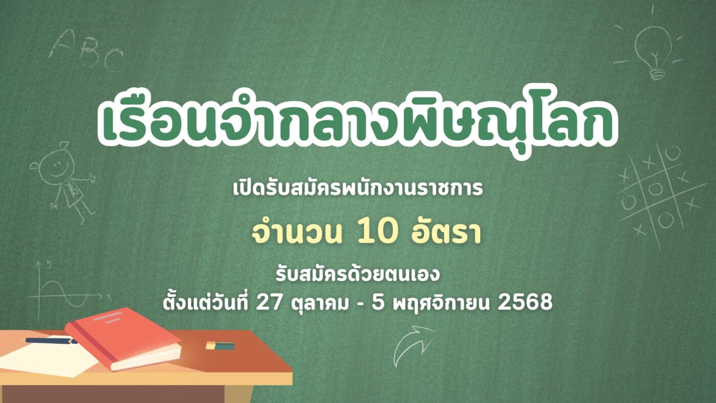 เรือนจำกลางพิษณุโลก เปิดรับสมัครพนักงานราชการ 10 อัตรา รับสมัครด้วยตนเอง ตั้งแต่วันที่ 27 ตุลาคม – 5 พฤศจิกายน 2568