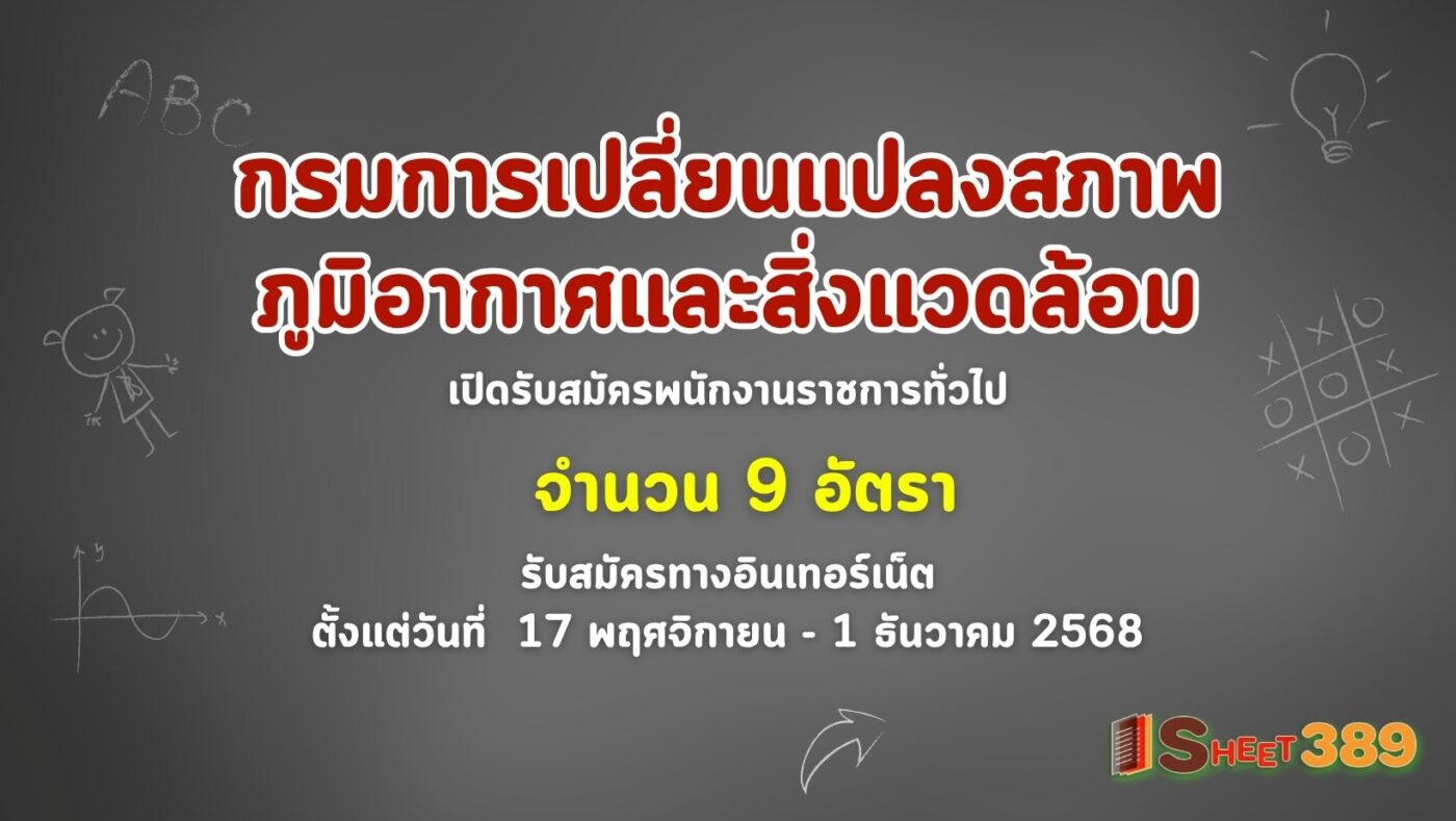กรมการเปลี่ยนแปลงสภาพภูมิอากาศและสิ่งแวดล้อม เปิดรับสมัครพนักงานราชการทั่วไป 9 อัตรา รับสมัครทางอินเทอร์เน็ต ตั้งแต่วันที่ 17 พฤศจิกายน – 1 ธันวาคม 2568