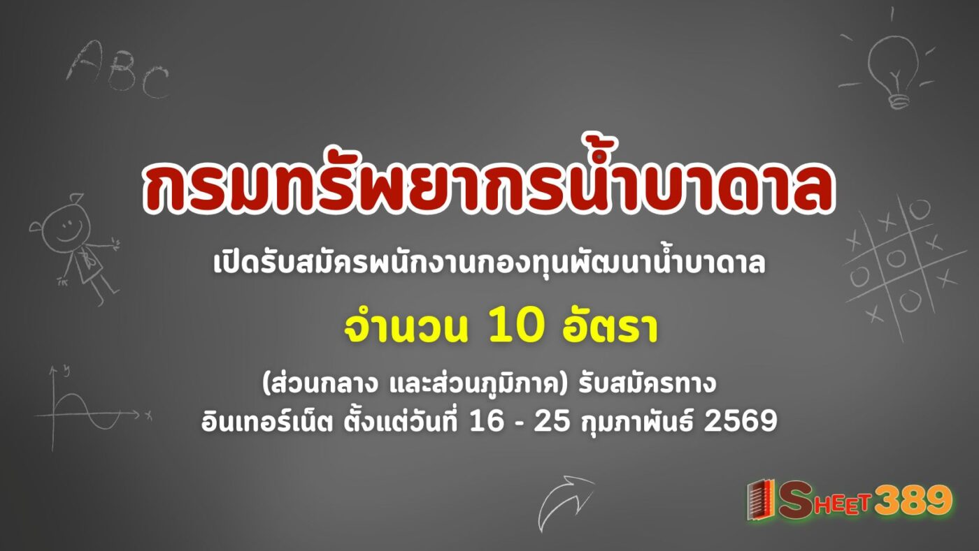 กรมทรัพยากรน้ำบาดาล เปิดรับสมัครพนักงานกองทุนพัฒนาน้ำบาดาล 10 อัตรา (ส่วนกลาง และส่วนภูมิภาค) รับสมัครทางอินเทอร์เน็ต ตั้งแต่วันที่ 16 – 25 กุมภาพันธ์ 2569