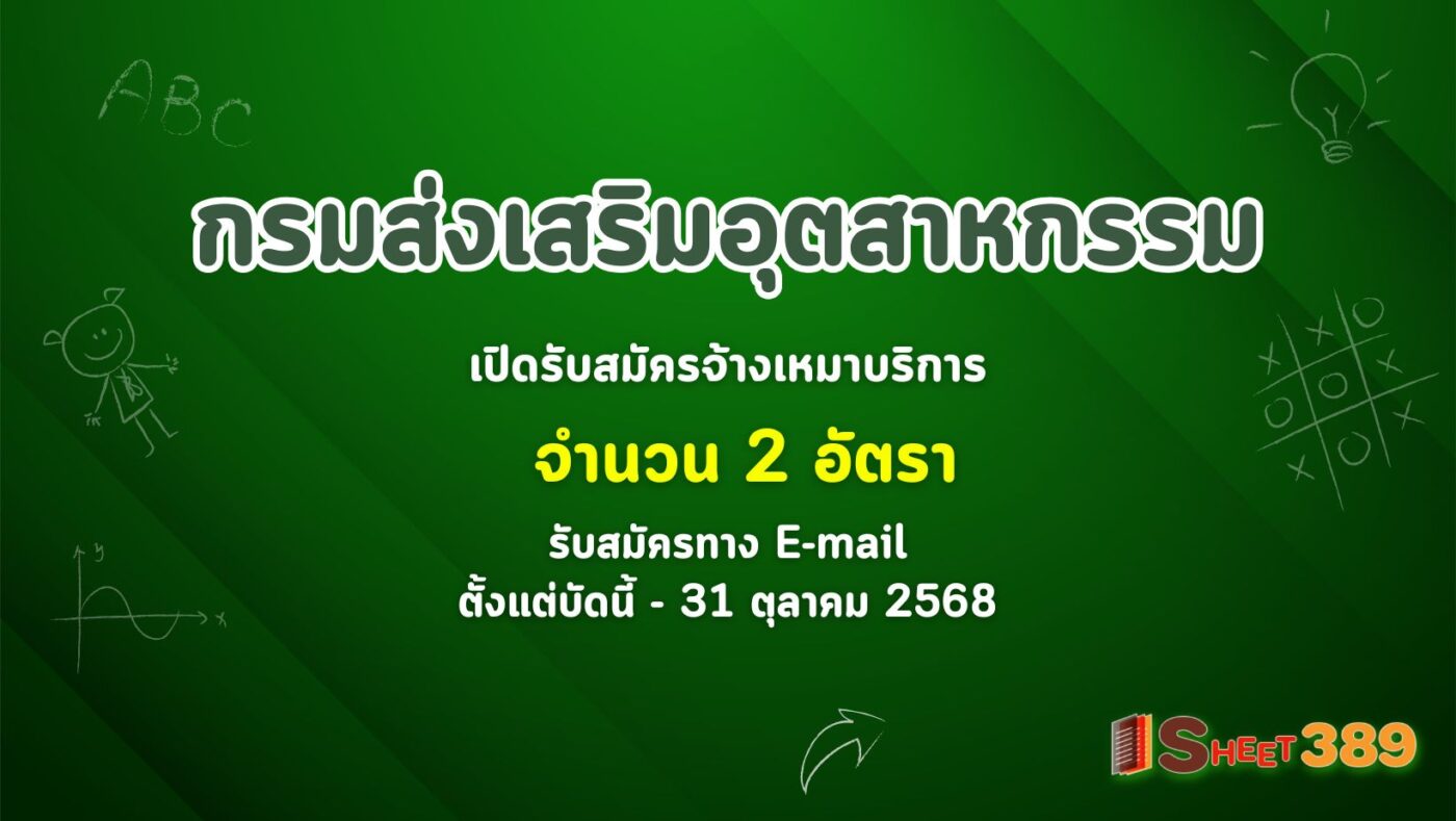 กรมส่งเสริมอุตสาหกรรม เปิดรับสมัครจ้างเหมาบริการ 2 อัตรา รับสมัครทาง E-mail ตั้งแต่บัดนี้ – 31 ตุลาคม 2568