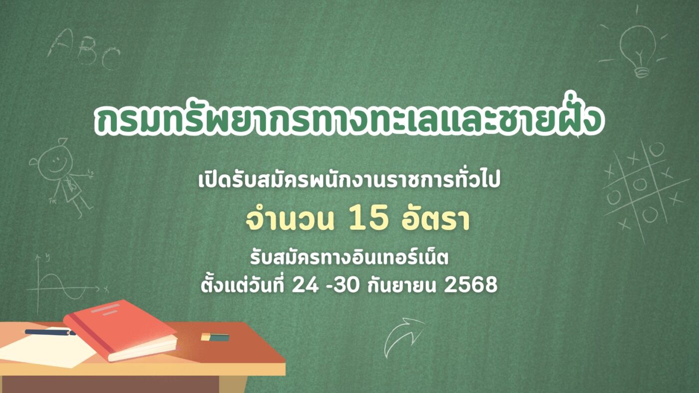กรมทรัพยากรทางทะเลและชายฝั่ง เปิดรับสมัครพนักงานราชการทั่วไป 15 อัตรา รับสมัครทางอินเทอร์เน็ต ตั้งแต่วันที่ 24 -30 กันยายน 2568
