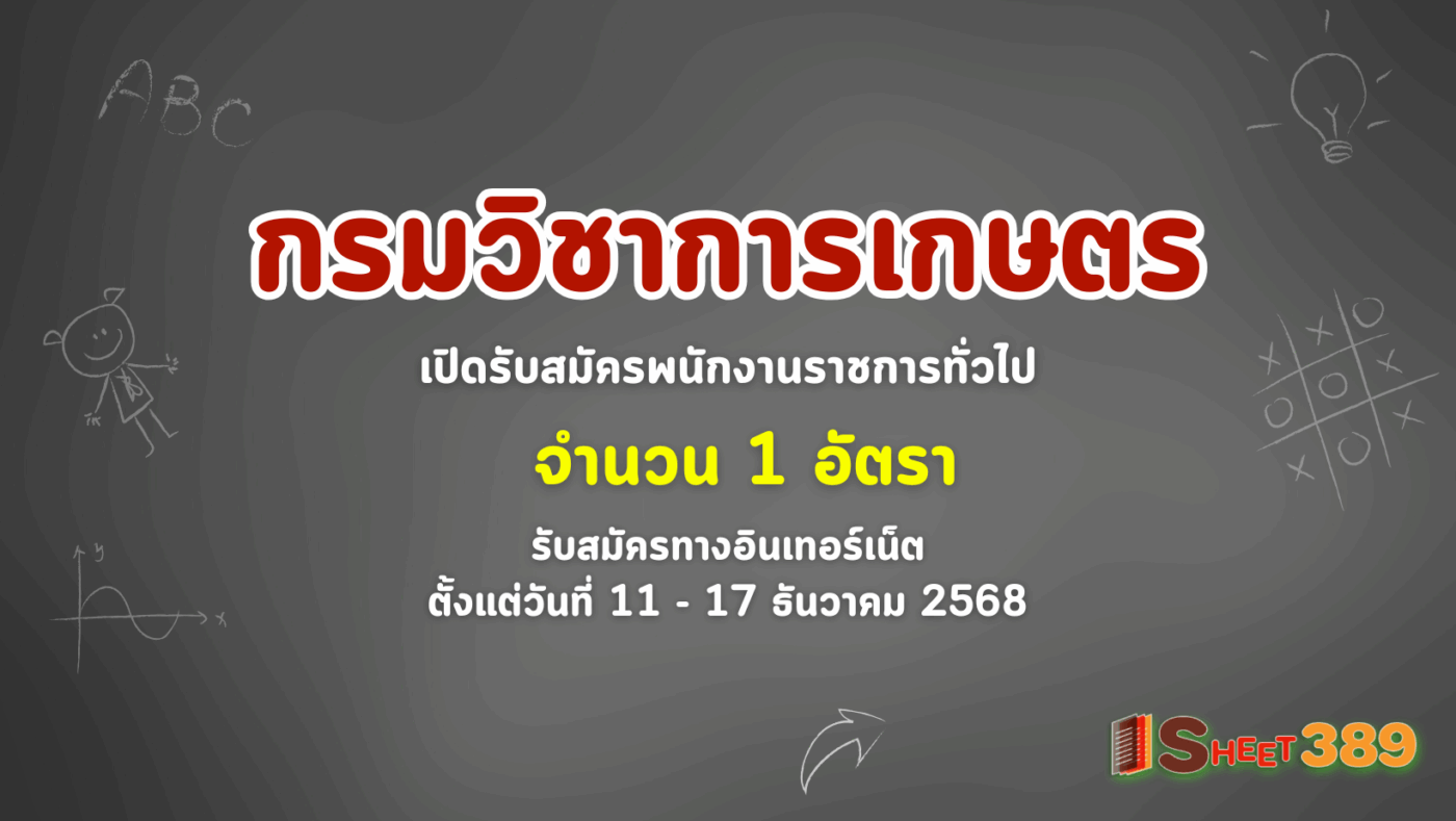 กรมวิชาการเกษตร เปิดรับสมัครพนักงานราชการทั่วไป 1 อัตรา รับสมัครทางอินเทอร์เน็ต ตั้งแต่วันที่ 11 – 17 ธันวาคม 2568