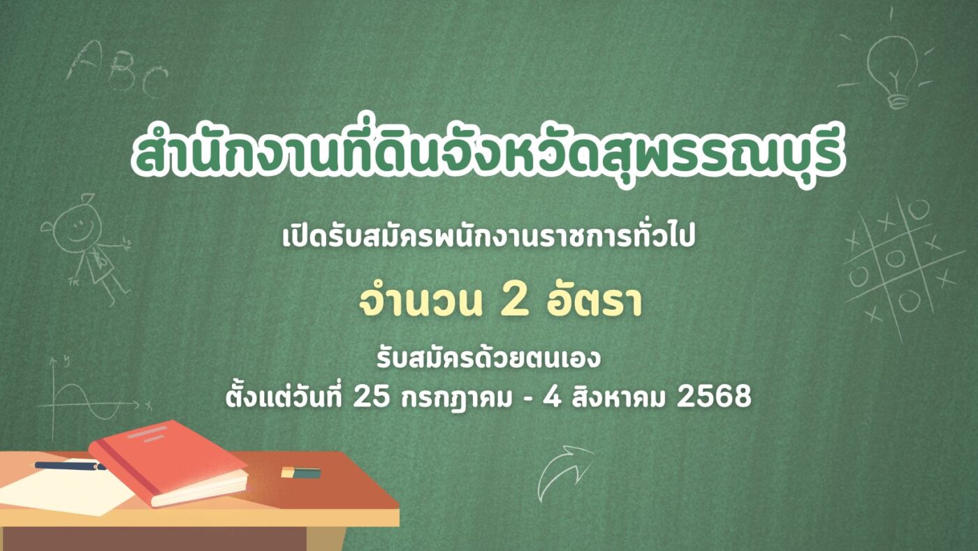 สำนักงานที่ดินจังหวัดสุพรรณบุรี เปิดรับสมัครพนักงานราชการทั่วไป 2 อัตรา รับสมัครด้วยตนเอง ตั้งแต่วันที่ 25 กรกฎาคม – 4 สิงหาคม 2568