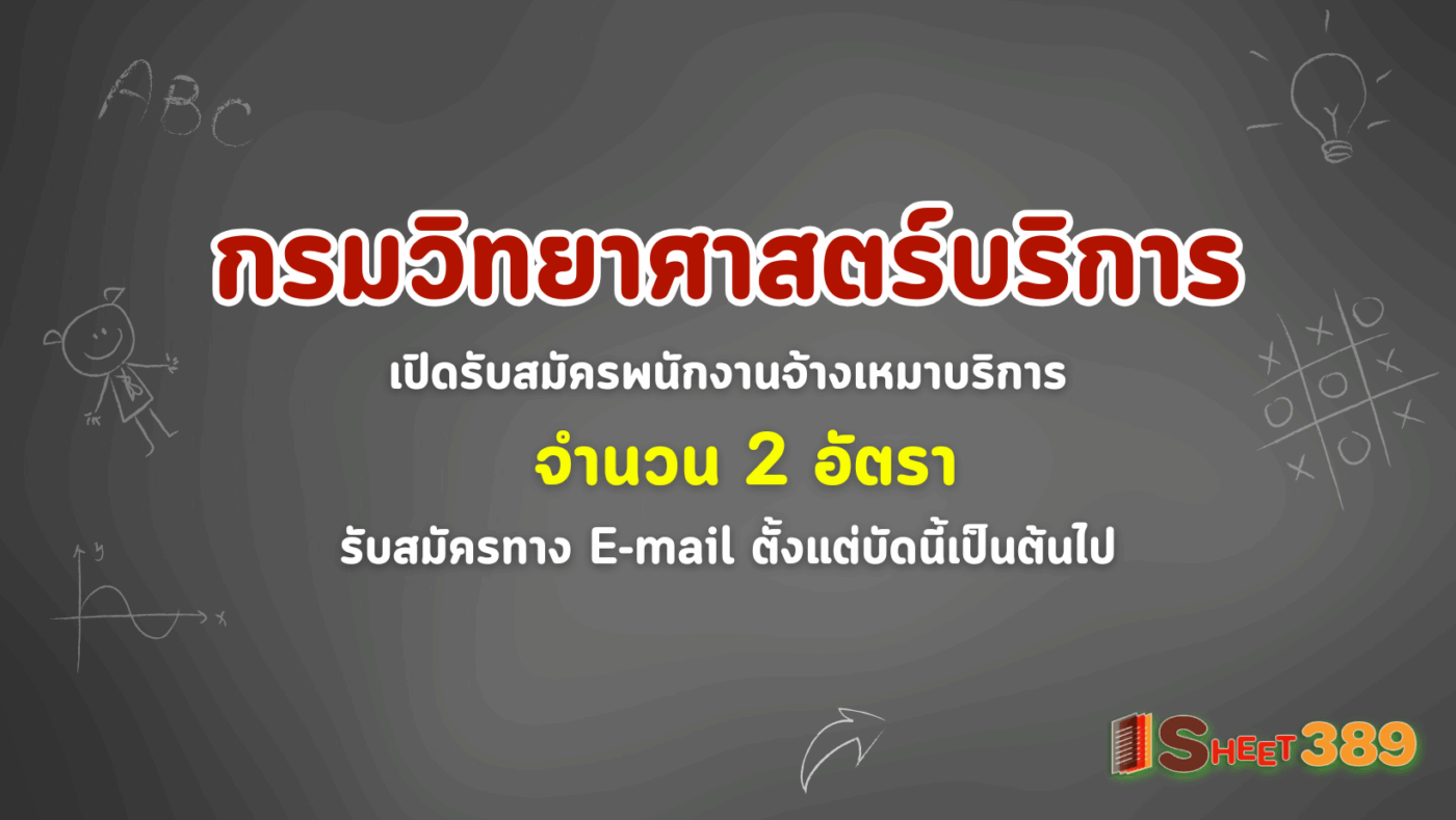 กรมวิทยาศาสตร์บริการ เปิดรับสมัครพนักงานจ้างเหมาบริการ 2 อัตรา รับสมัครทาง E-mail ตั้งแต่บัดนี้เป็นต้นไป
