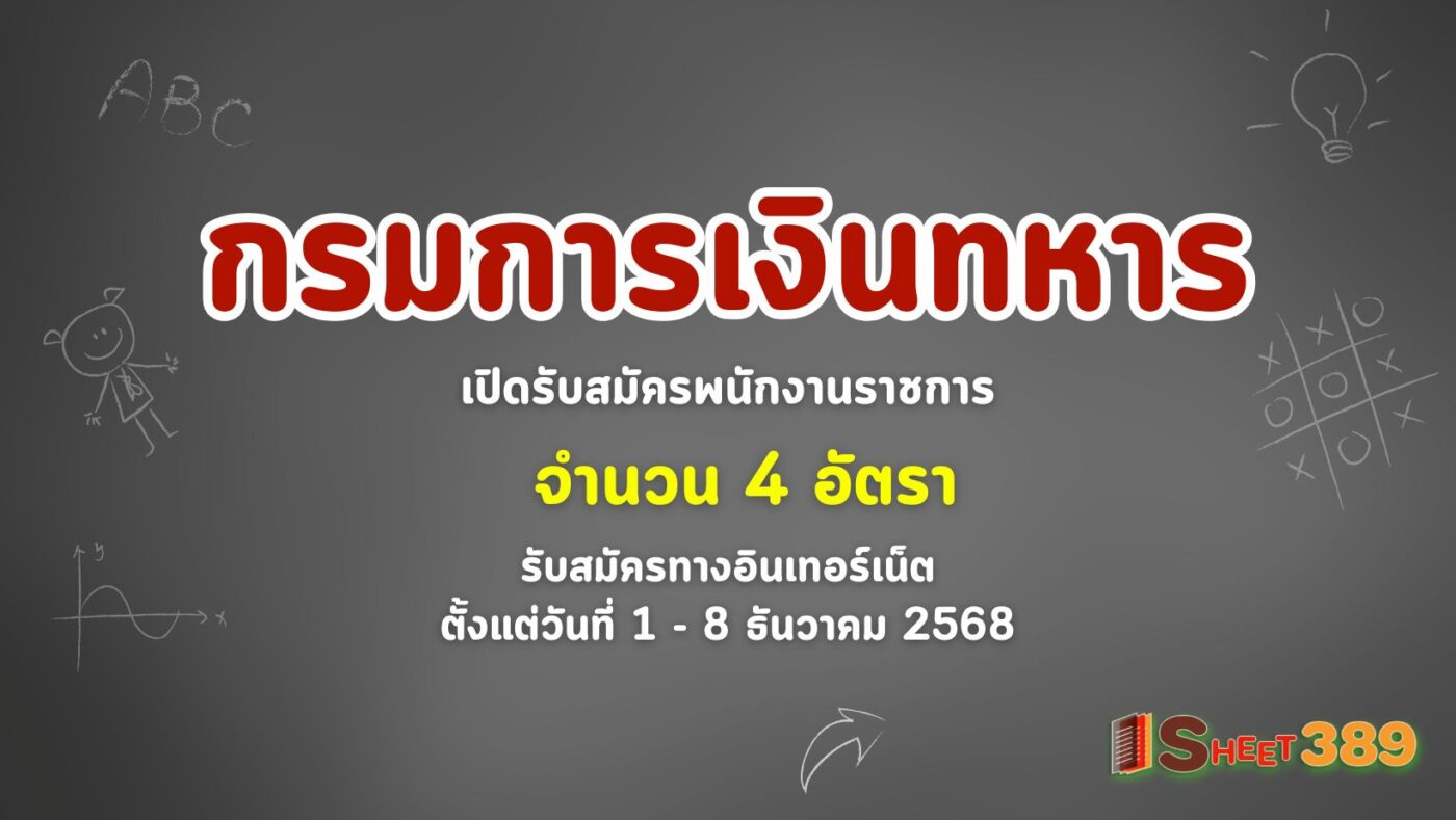 กรมการเงินทหาร เปิดรับสมัครพนักงานราชการ 4 อัตรา รับสมัครทางอินเทอร์เน็ต ตั้งแต่วันที่ 1 – 8 ธันวาคม 2568