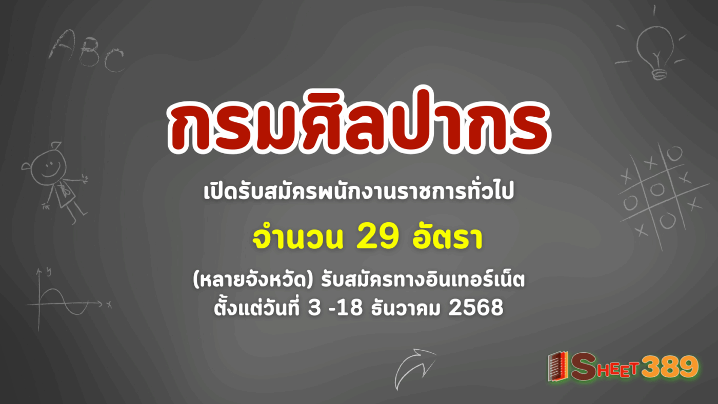 กรมศิลปากร เปิดรับสมัครพนักงานราชการทั่วไป 29 อัตรา (หลายจังหวัด) รับสมัครทางอินเทอร์เน็ต ตั้งแต่วันที่ 3 -18 ธันวาคม 2568
