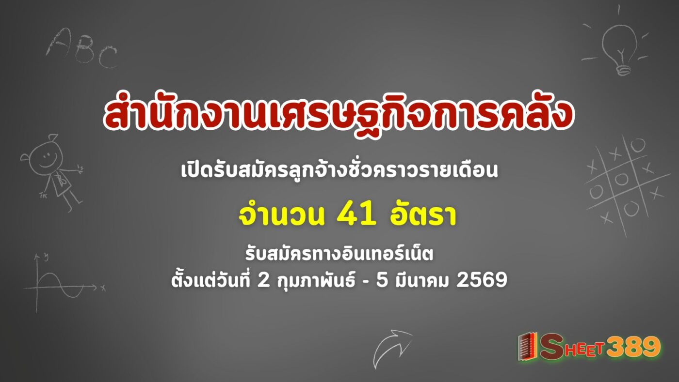 สำนักงานเศรษฐกิจการคลัง เปิดรับสมัครลูกจ้างชั่วคราวรายเดือน 41 อัตรา รับสมัครทางอินเทอร์เน็ต ตั้งแต่วันที่ 2 กุมภาพันธ์ – 5 มีนาคม 2569