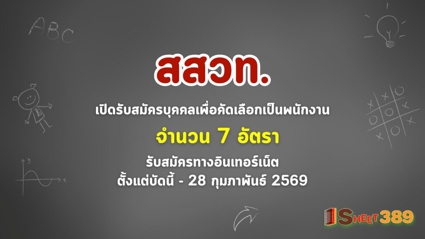 สสวท. เปิดรับสมัครบุคคลเพื่อคัดเลือกเป็นพนักงาน 7 อัตรา รับสมัครทางอินเทอร์เน็ต ตั้งแต่บัดนี้ – 28 กุมภาพันธ์ 2569