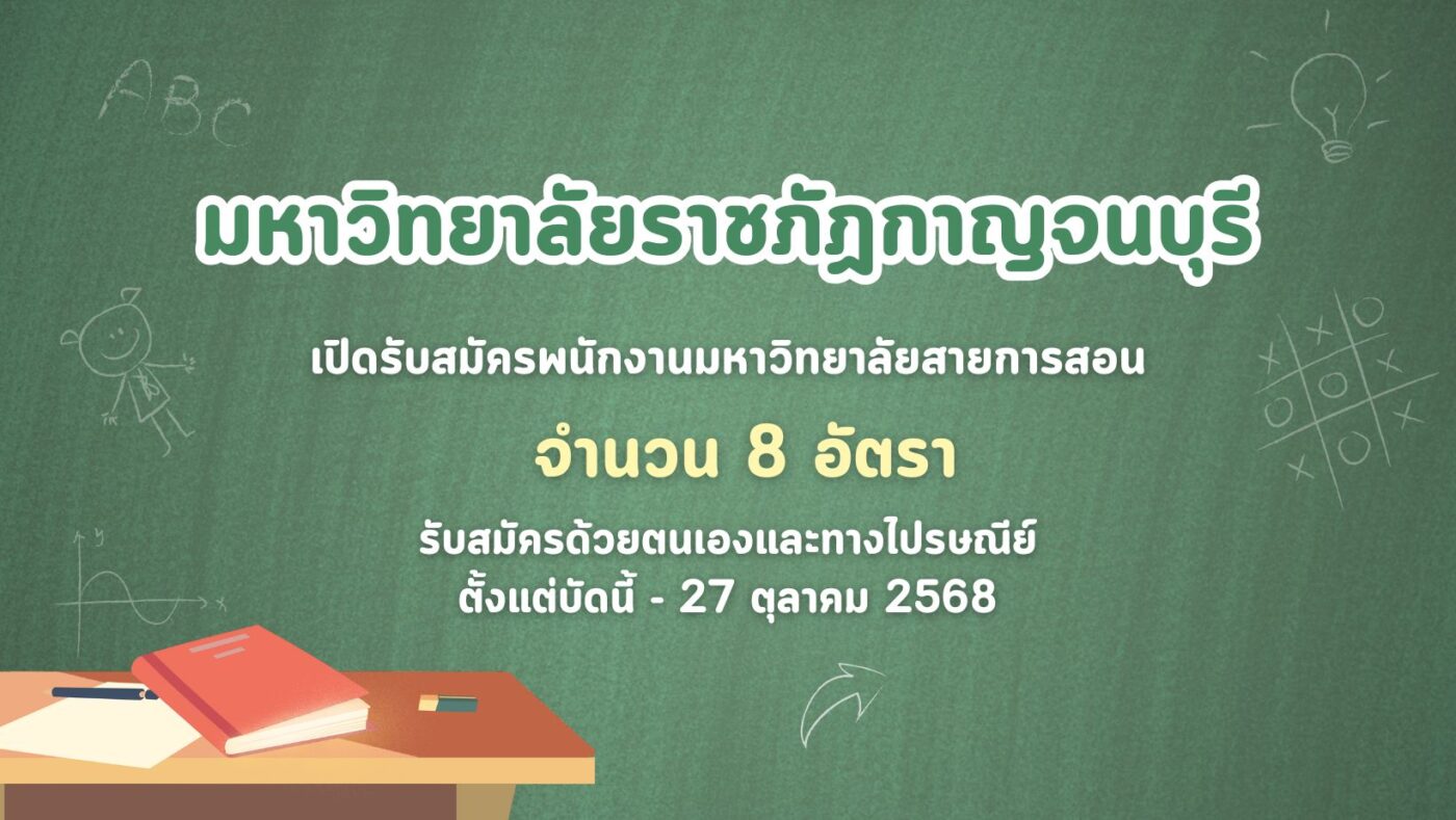 มหาวิทยาลัยราชภัฏกาญจนบุรี เปิดรับสมัครพนักงานมหาวิทยาลัยสายการสอน 8 อัตรา รับสมัครด้วยตนเองและทางไปรษณีย์ ตั้งแต่บัดนี้ – 27 ตุลาคม 2568