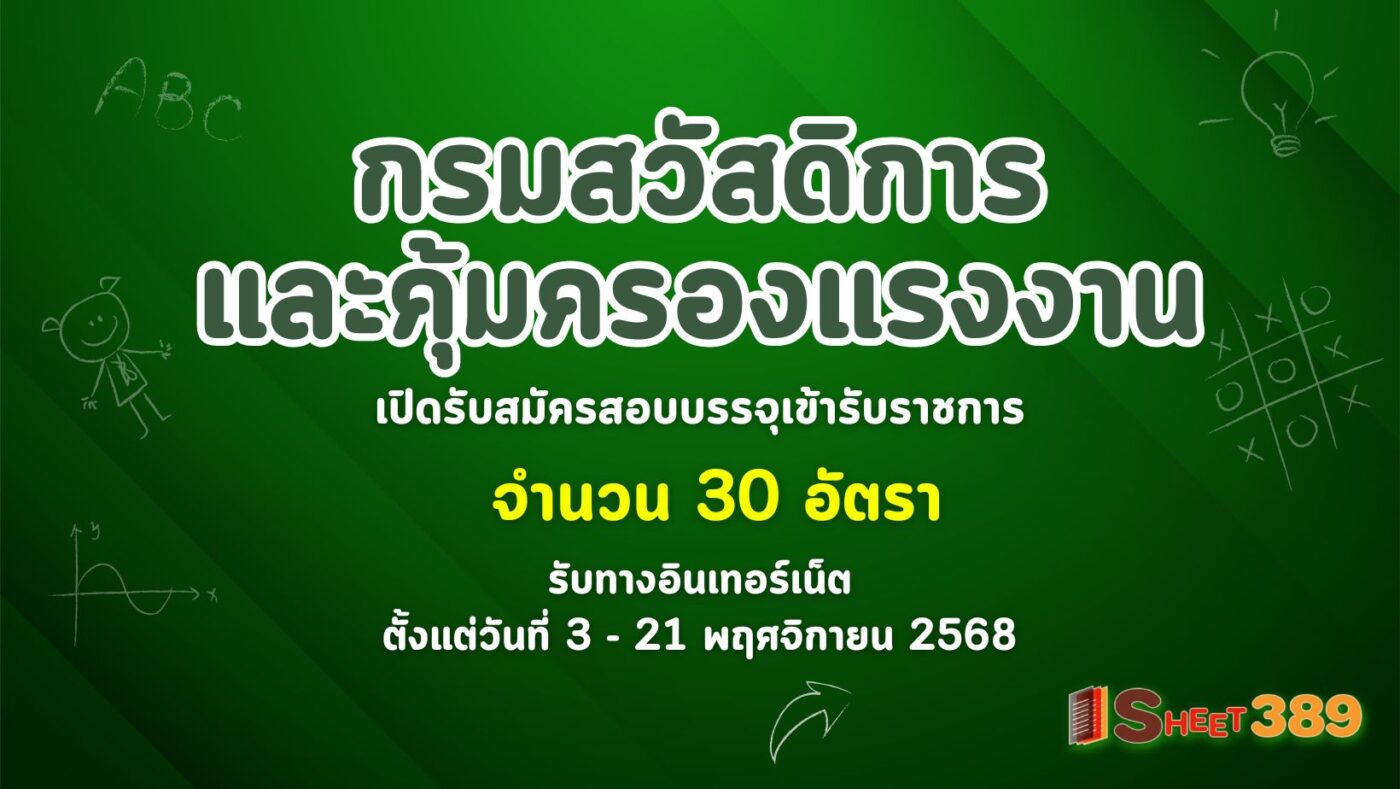 กรมสวัสดิการและคุ้มครองแรงงาน เปิดรับสมัครสอบบรรจุเข้ารับราชการ 30 อัตรา รับทางอินเทอร์เน็ต ตั้งแต่วันที่ 3 – 21 พฤศจิกายน 2568
