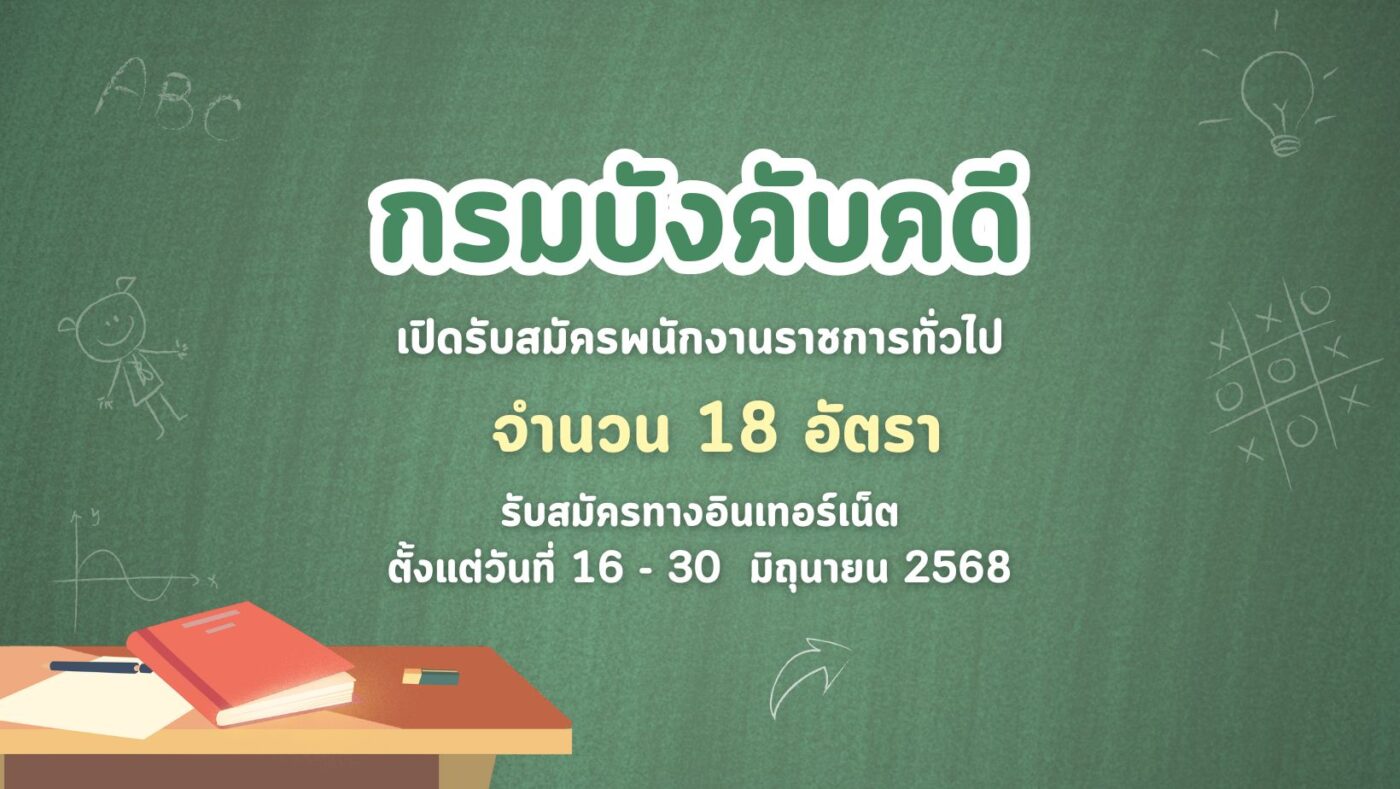 กรมบังคับคดี เปิดรับสมัครพนักงานราชการทั่วไป 18 อัตรา รับสมัครทางอินเทอร์เน็ต ตั้งแต่วันที่ 16 – 30 มิถุนายน 2568