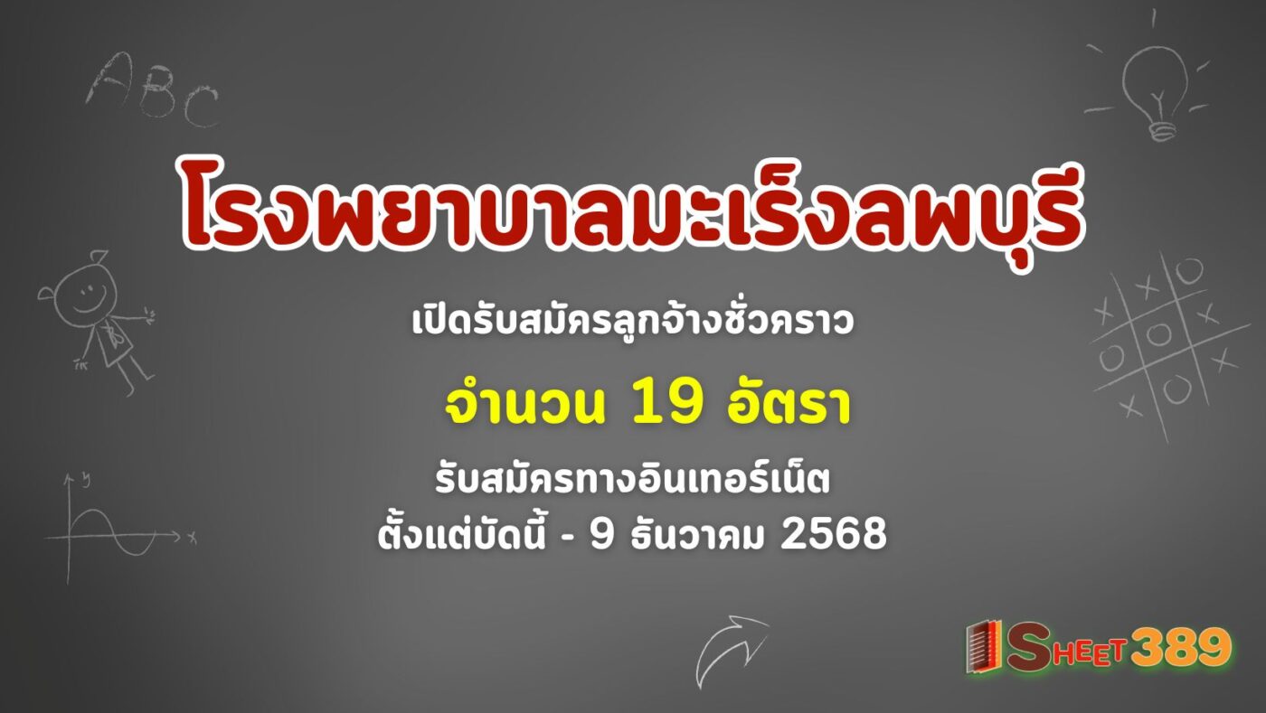 โรงพยาบาลมะเร็งลพบุรี เปิดรับสมัครลูกจ้างชั่วคราว 19 อัตรา รับสมัครทางอินเทอร์เน็ต ตั้งแต่บัดนี้ – 9 ธันวาคม 2568