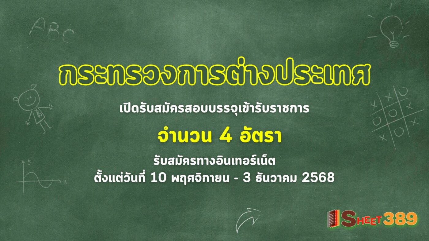 กระทรวงการต่างประเทศ เปิดรับสมัครสอบบรรจุเข้ารับราชการ 4 อัตรา รับสมัครทางอินเทอร์เน็ต ตั้งแต่วันที่ 10 พฤศจิกายน – 3 ธันวาคม 2568