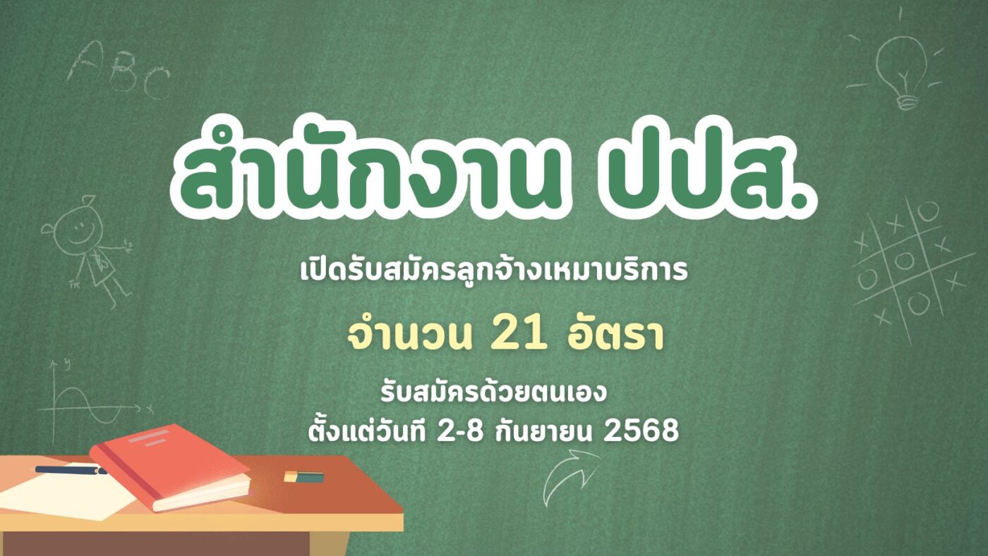สำนักงาน ปปส. เปิดรับสมัครลูกจ้างเหมาบริการ 21 อัตรา รับสมัครด้วยตนเอง ตั้งแต่วันที 2-8 กันยายน 2568