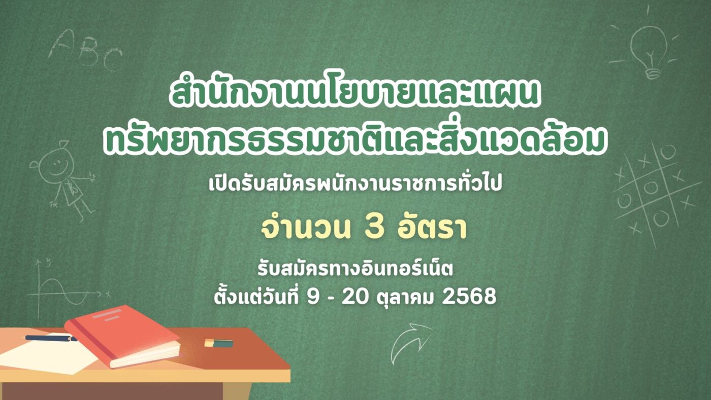 สำนักงานนโยบายและแผนทรัพยากรธรรมชาติและสิ่งแวดล้อม เปิดรับสมัครพนักงานราชการทั่วไป 3 อัตรา รับสมัครทางอินทอร์เน็ต ตั้งแต่วันที่ 9 – 20 ตุลาคม 2568