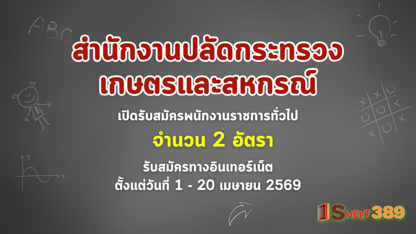 สำนักงานปลัดกระทรวงเกษตรและสหกรณ์ เปิดรับสมัครพนักงานราชการทั่วไป 2 อัตรา รับสมัครทางอินเทอร์เน็ต ตั้งแต่วันที่ 1 – 20 เมษายน 2569