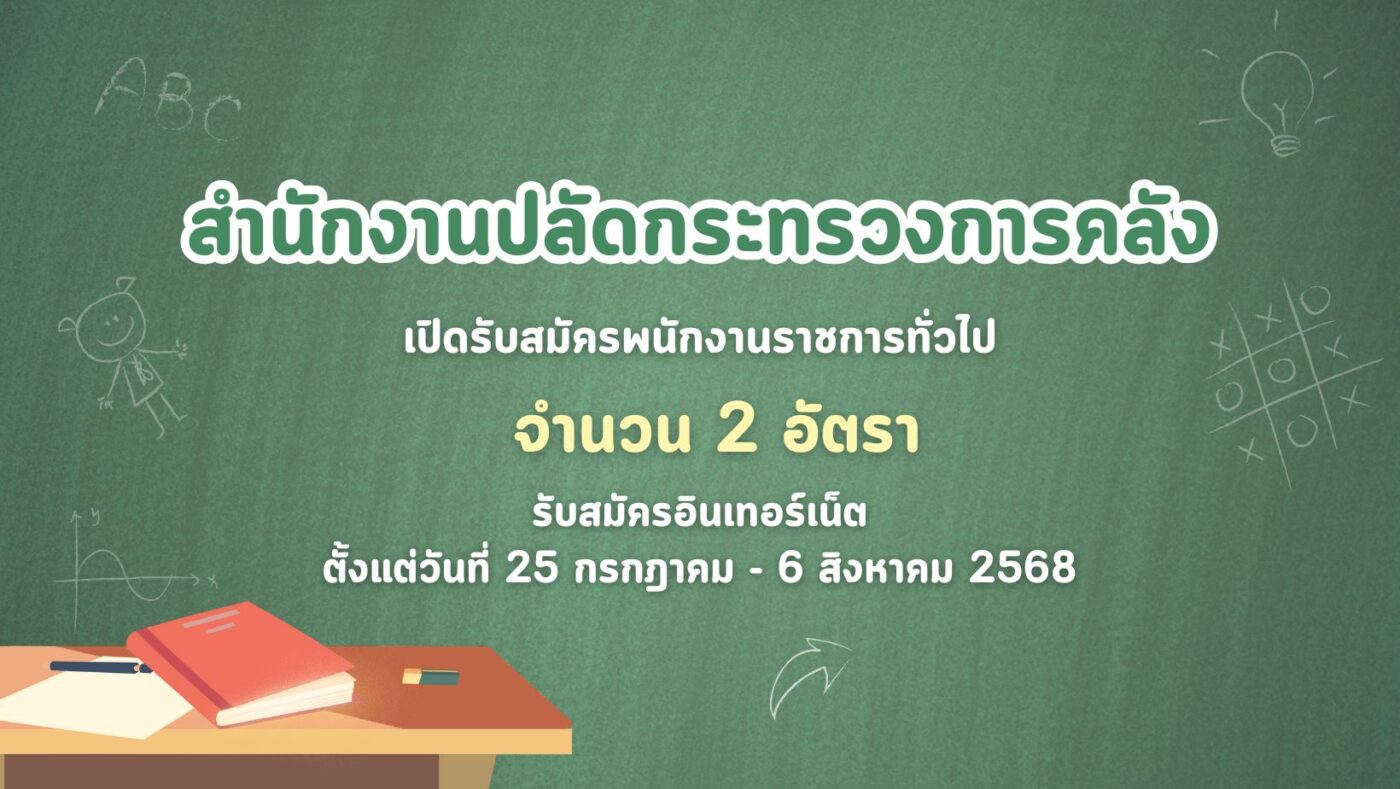 สำนักงานปลัดกระทรวงการคลัง เปิดรับสมัครพนักงานราชการทั่วไป 2 อัตรา รับสมัครอินเทอร์เน็ต ตั้งแต่วันที่ 25 กรกฎาคม – 6 สิงหาคม 2568