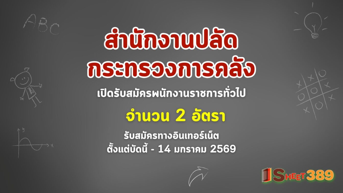 สำนักงานปลัดกระทรวงการคลัง เปิดรับสมัครพนักงานราชการทั่วไป 2 อัตรา รับสมัครทางอินเทอร์เน็ต ตั้งแต่บัดนี้ – 14 มกราคม 2569