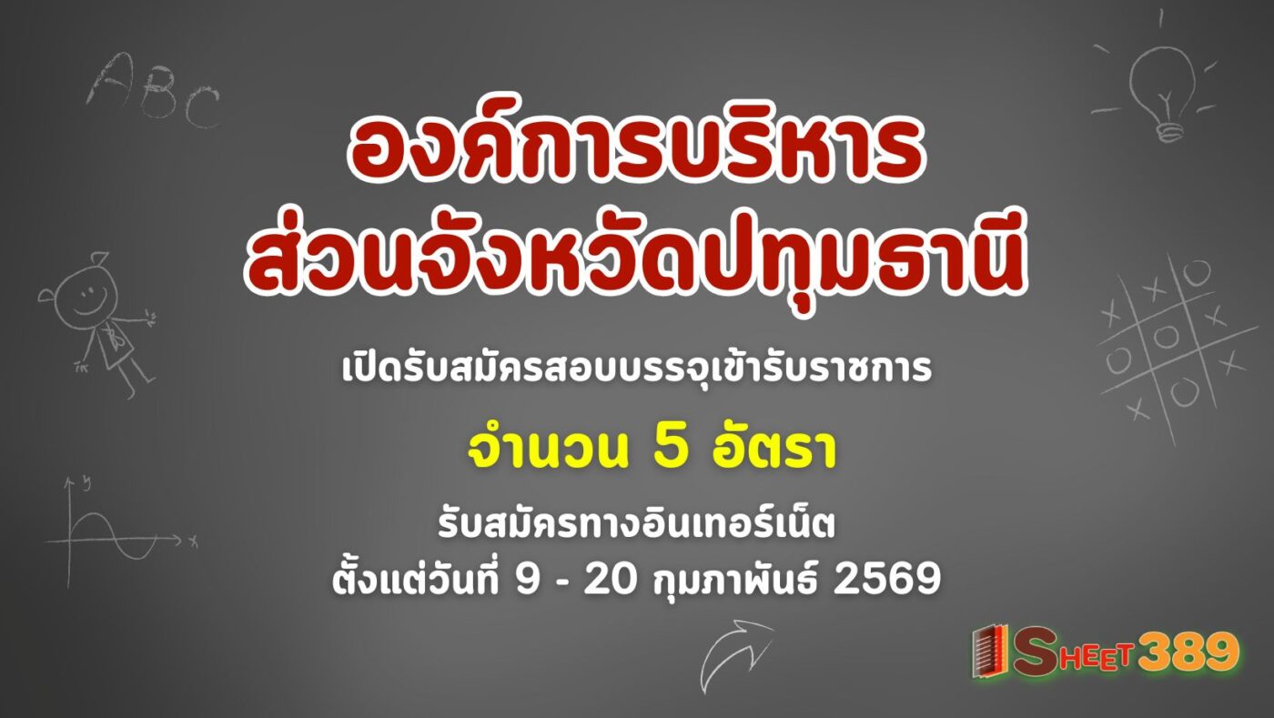 องค์การบริหารส่วนจังหวัดปทุมธานี เปิดรับสมัครเพื่อจ้างเป็นพนักงานจ้าง 140 อัตรา รับสมัครด้วยตนเอง ตั้งแต่วันที่ 9 – 20 กุมภาพันธ์ 2569