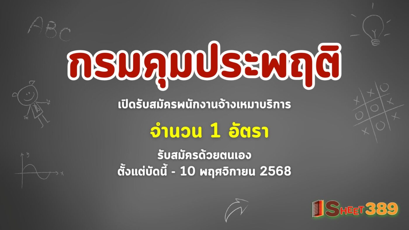 กรมคุมประพฤติ เปิดรับสมัครพนักงานจ้างเหมาบริการ 1 อัตรา รับสมัครด้วยตนเอง ตั้งแต่บัดนี้ – 10 พฤศจิกายน 2568