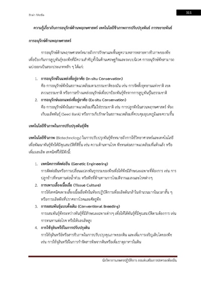 – ความรู้เกี่ยวกับการอนุรักษ์ด้านพฤกษศาสตร์ เทคโนโลยีชีวภาพการปรับปรุงพันธุ์ การขยายพันธุ์