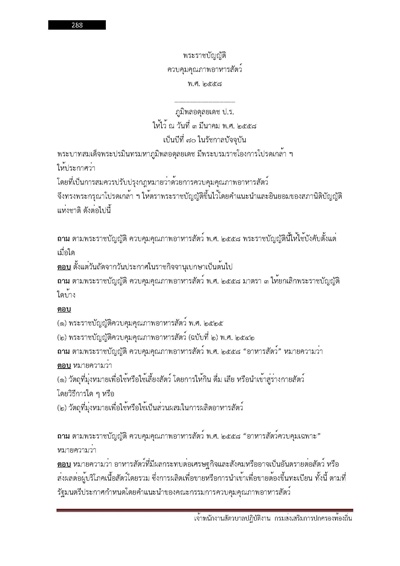– พระราชบัญญัติควบคุมคุณภาพอาหารสัตว์ พ.ศ. ๒๕๕๘
