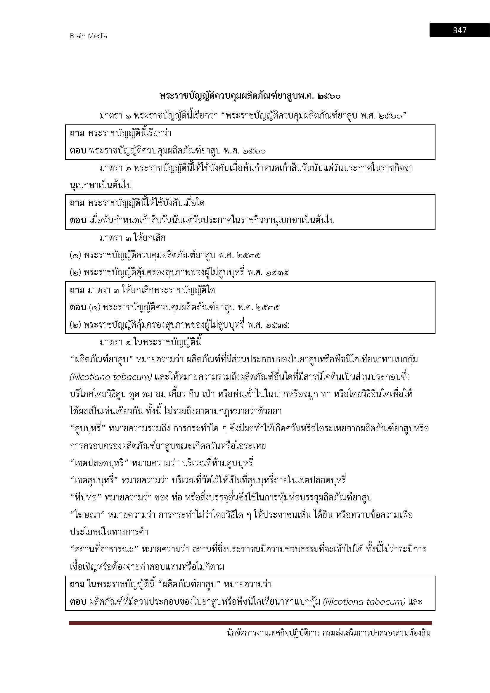 – แนวข้อสอบพระราชบัญญัติควบคุมผลิตภัณฑ์ยาสูบ พ.ศ. 2560