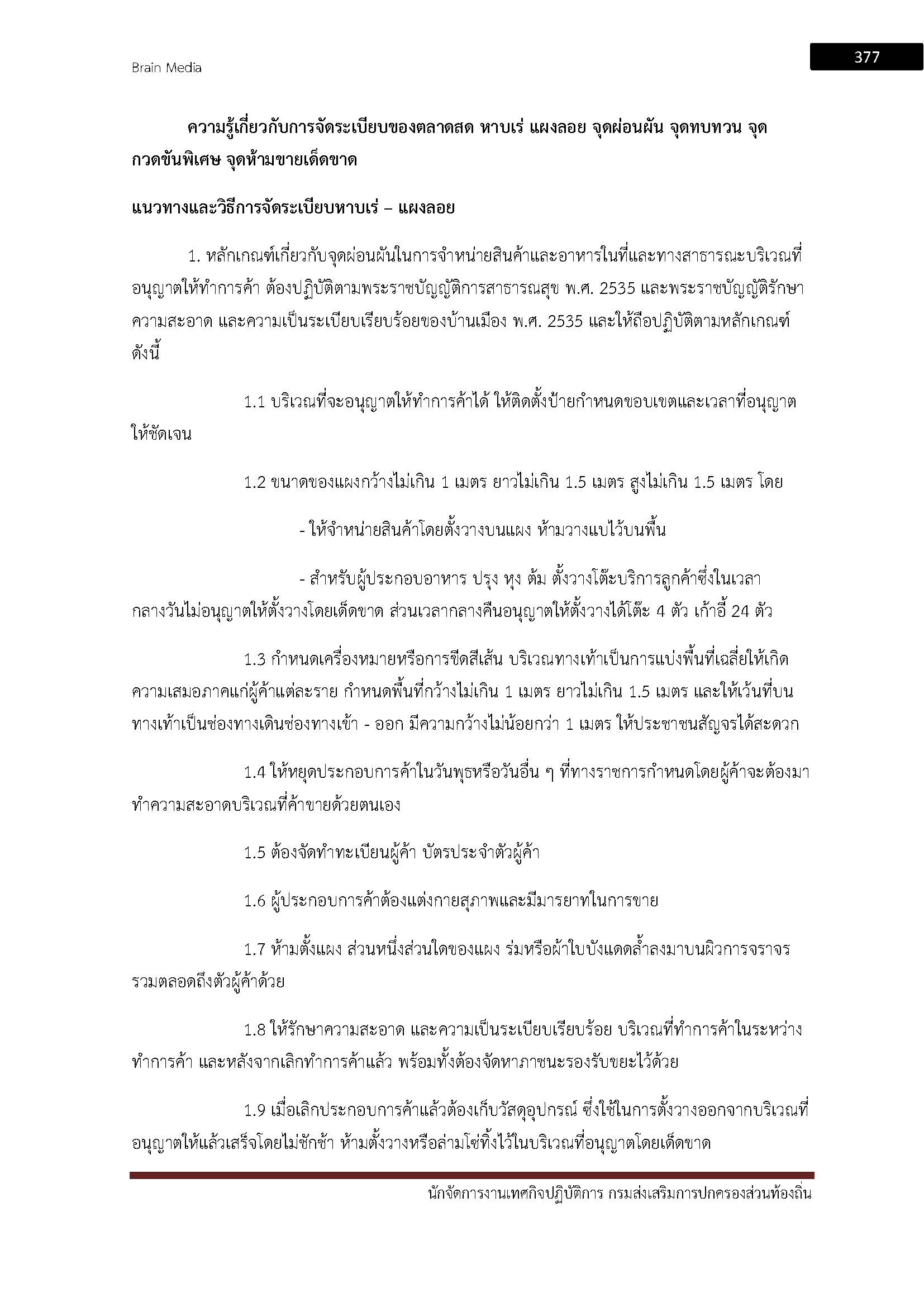 – ความรู้เกี่ยวกับการตรวจสอบ การจัดระเบียบตลาด หาบเร่ แผงลอยจุดผ่อนผัน จุดทบทวน จุดกวดขันพิเศษ จุดห้ามขายเด็ดขาด