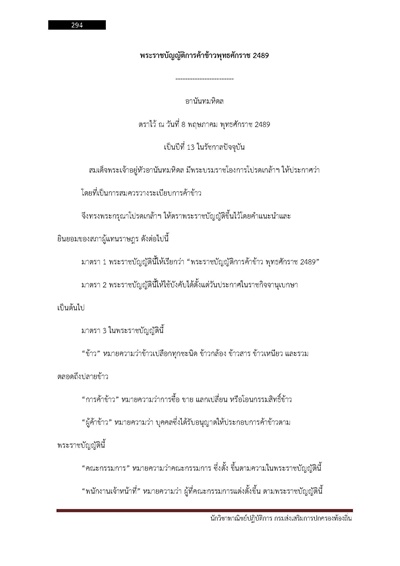 – พระราชบัญญัติการค้าข้าวพุทธศักราช 2489