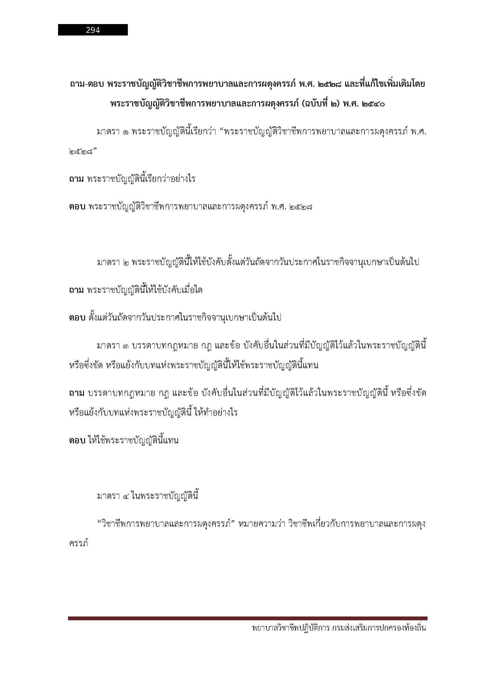 – พระราชบัญญัติวิชาชีพการพยาบาลและการผดุงครรภ์ พ.ศ. ๒๕๒๘และที่แก้ไขเพิ่มเติม