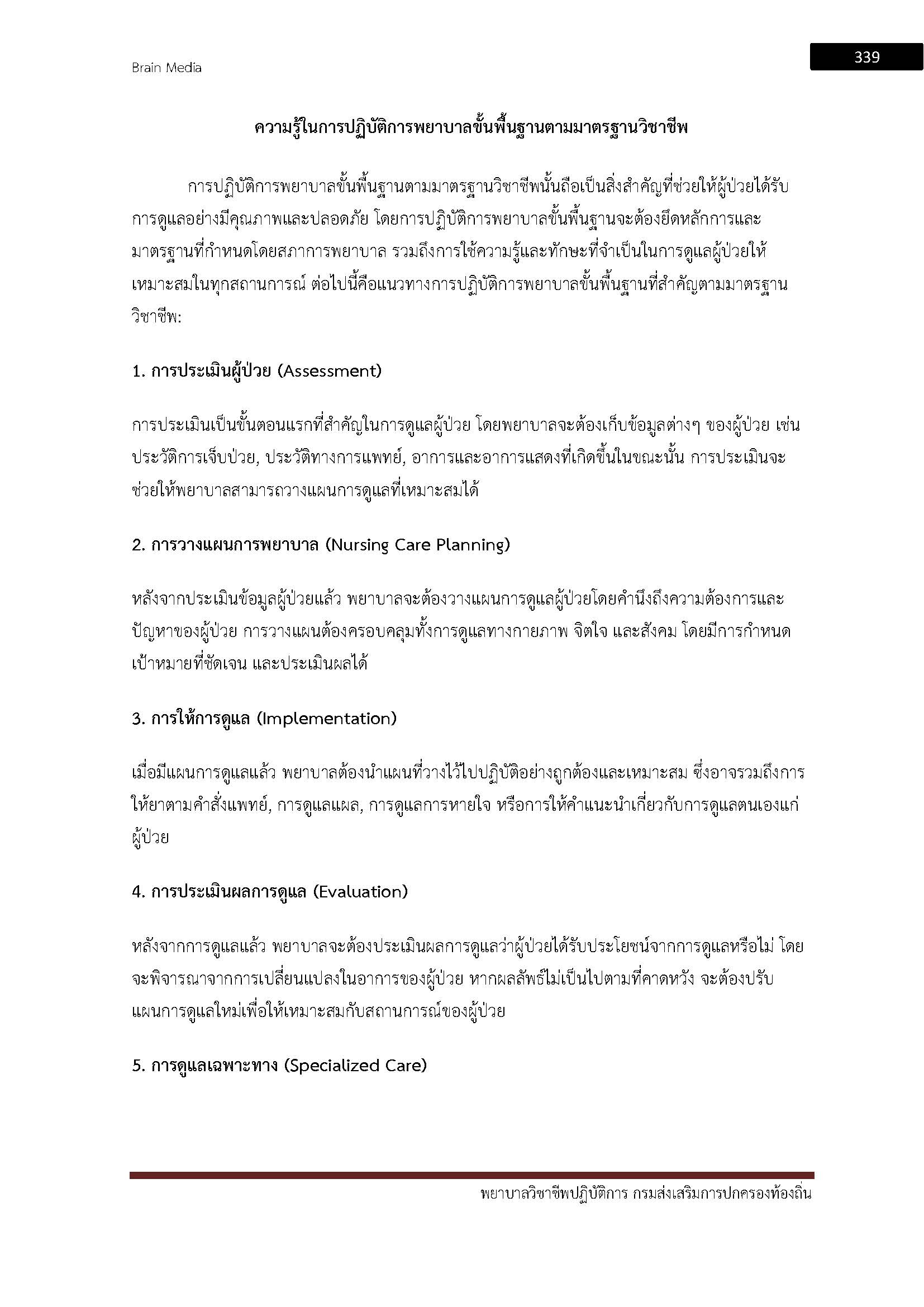 – ความรู้ในการปฏิบัติการพยาบาลขั้นพื้นฐานตามมาตรฐานวิชาชีพ