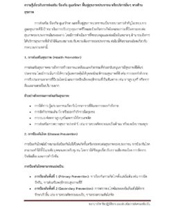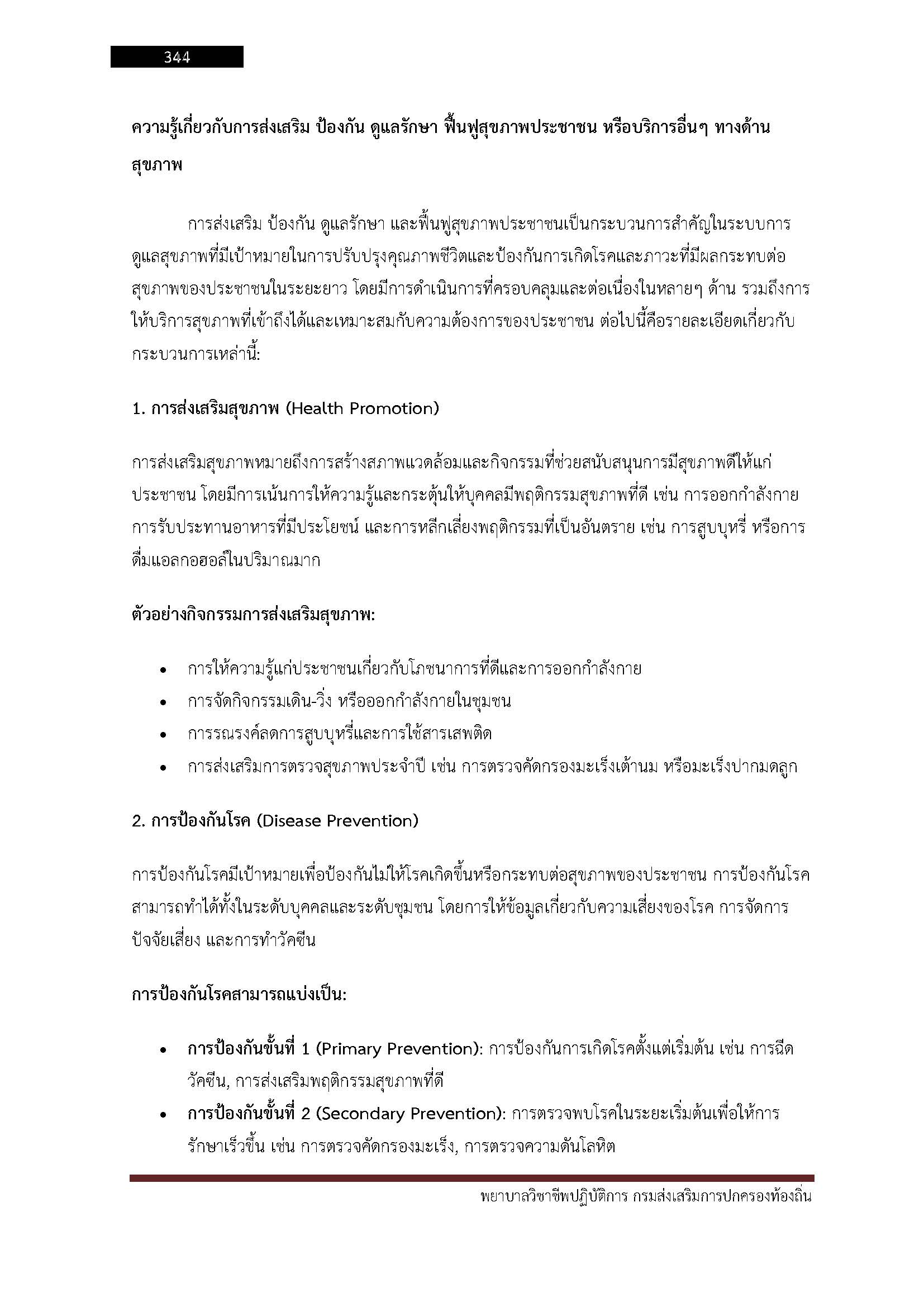 – ความรู้เกี่ยวกับการส่งเสริม ป้องกัน ดูแลรักษา ฟื้นฟูสุขภาพประชาชนหรือการบริการอื่นๆ ทางด้านสุขภาพ