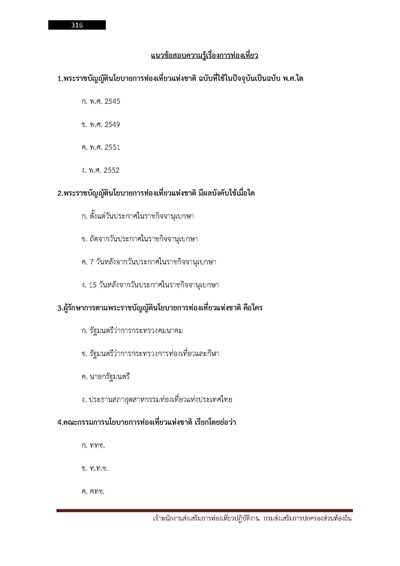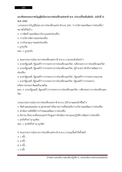– แนวข้อสอบพระราชบัญญัตินโยบายการท่องเที่ยวแห่งชาติ พ.ศ. ๒๕๕๑และที่แก้ไขเพิ่มเติม
