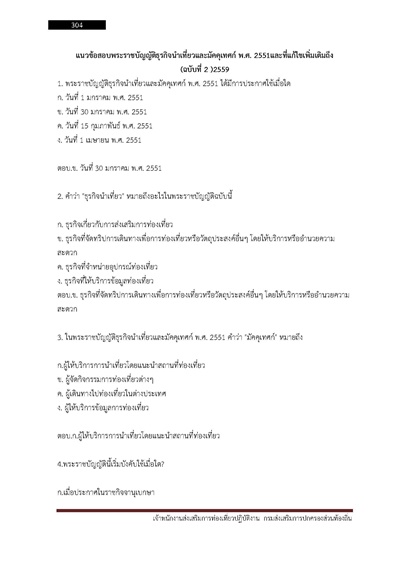 – แนวข้อสอบพระราชบัญญัติธุรกิจนำเที่ยวและมัคคุเทศก์ พ.ศ. ๒๕๕๑และที่แก้ไขเพิ่มเติม