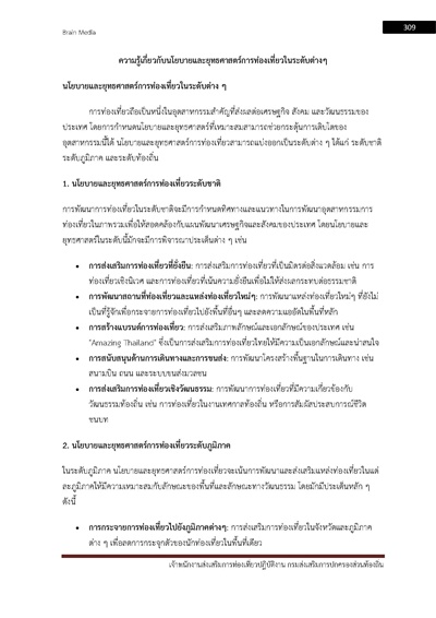 – ความรู้เกี่ยวกับนโยบายยุทธศาสตร์ด้านการท่องเที่ยวในระดับต่างๆ