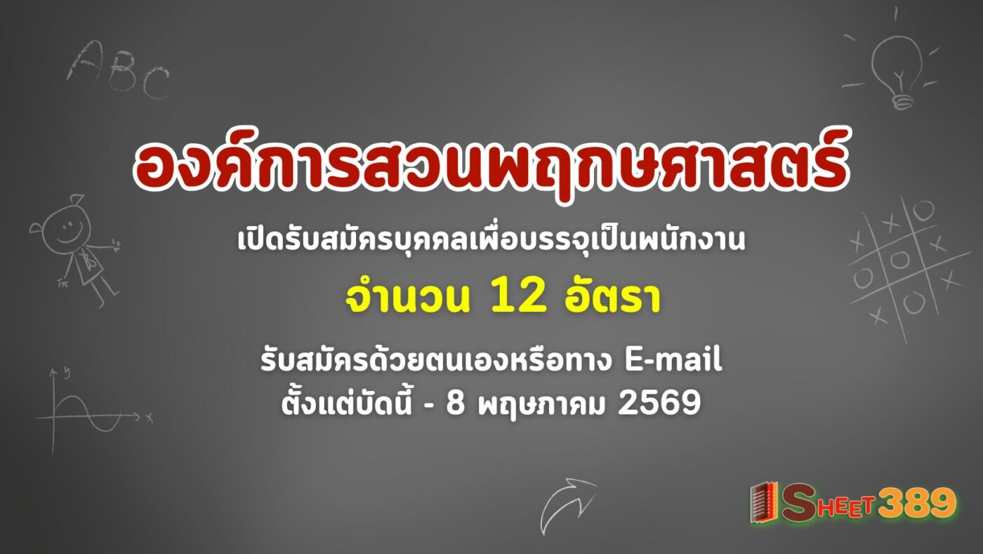 องค์การสวนพฤกษศาสตร์ เปิดรับสมัครบุคคลเพื่อบรรจุเป็นพนักงาน 12 อัตรา รับสมัครด้วยตนเองหรือทาง E-mail ตั้งแต่บัดนี้ – 8 พฤษภาคม 2569