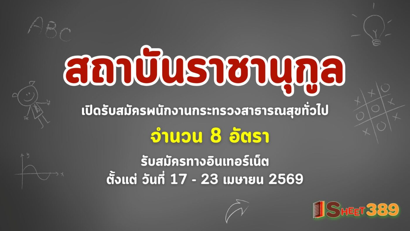 สถาบันราชานุกูล เปิดรับสมัครพนักงานกระทรวงสาธารณสุขทั่วไป 8 อัตรา รับสมัครทางอินเทอร์เน็ต ตั้งแต่ วันที่ 17 – 23 เมษายน 2569