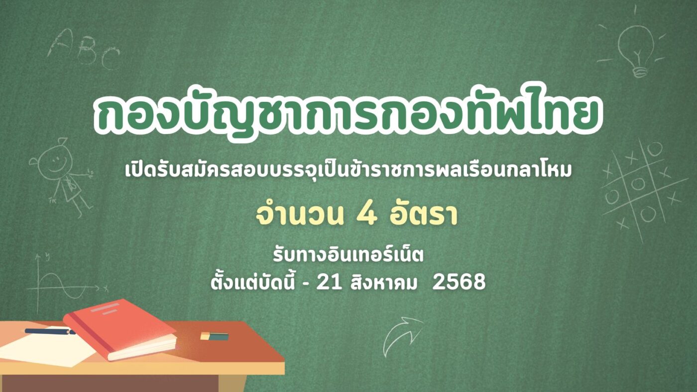 กองบัญชาการกองทัพไทย เปิดรับสมัครสอบบรรจุเป็นข้าราชการพลเรือนกลาโหม 4 อัตรา รับทางอินเทอร์เน็ต ตั้งแต่บัดนี้ – 21 สิงหาคม 2568